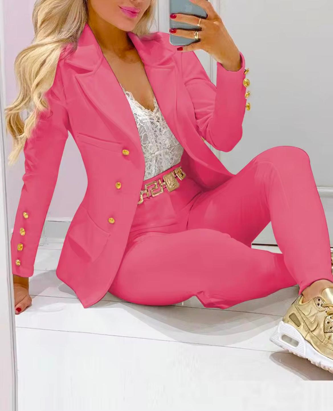 Spring Women's Clothing Elegant Office Lady Formal Suit Solid Blazer Two Pieces