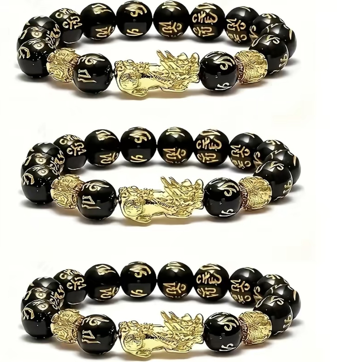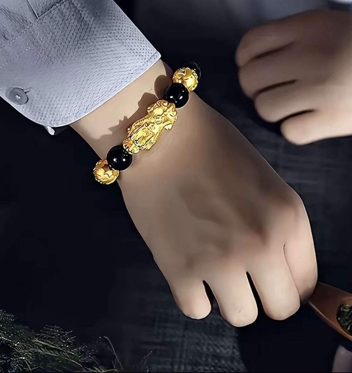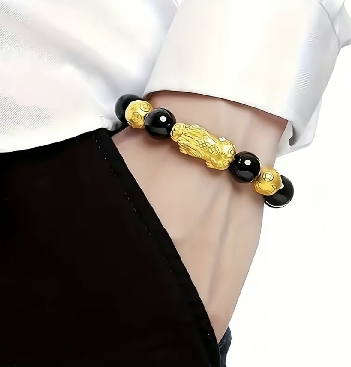 Premium beaded bracelet featuring a gold charm design, symbolizing wealth, protection, and personal energy.