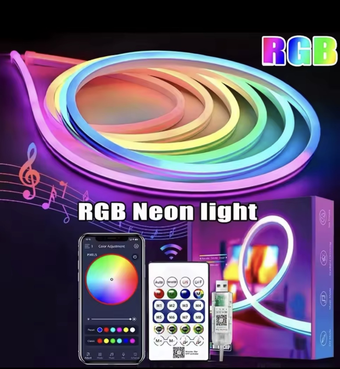 Transform any space with the A27F-DC5V RGBIC LED Neon Rope Light, a flexible and vibrant lighting solution designed to create immersive atmospheres for home décor, entertainment, and creative DIY projects. Featuring advanced RGBIC technology, this LED strip displays multiple colors simultaneously, delivering smooth gradients and dynamic lighting effects that elevate any environment.