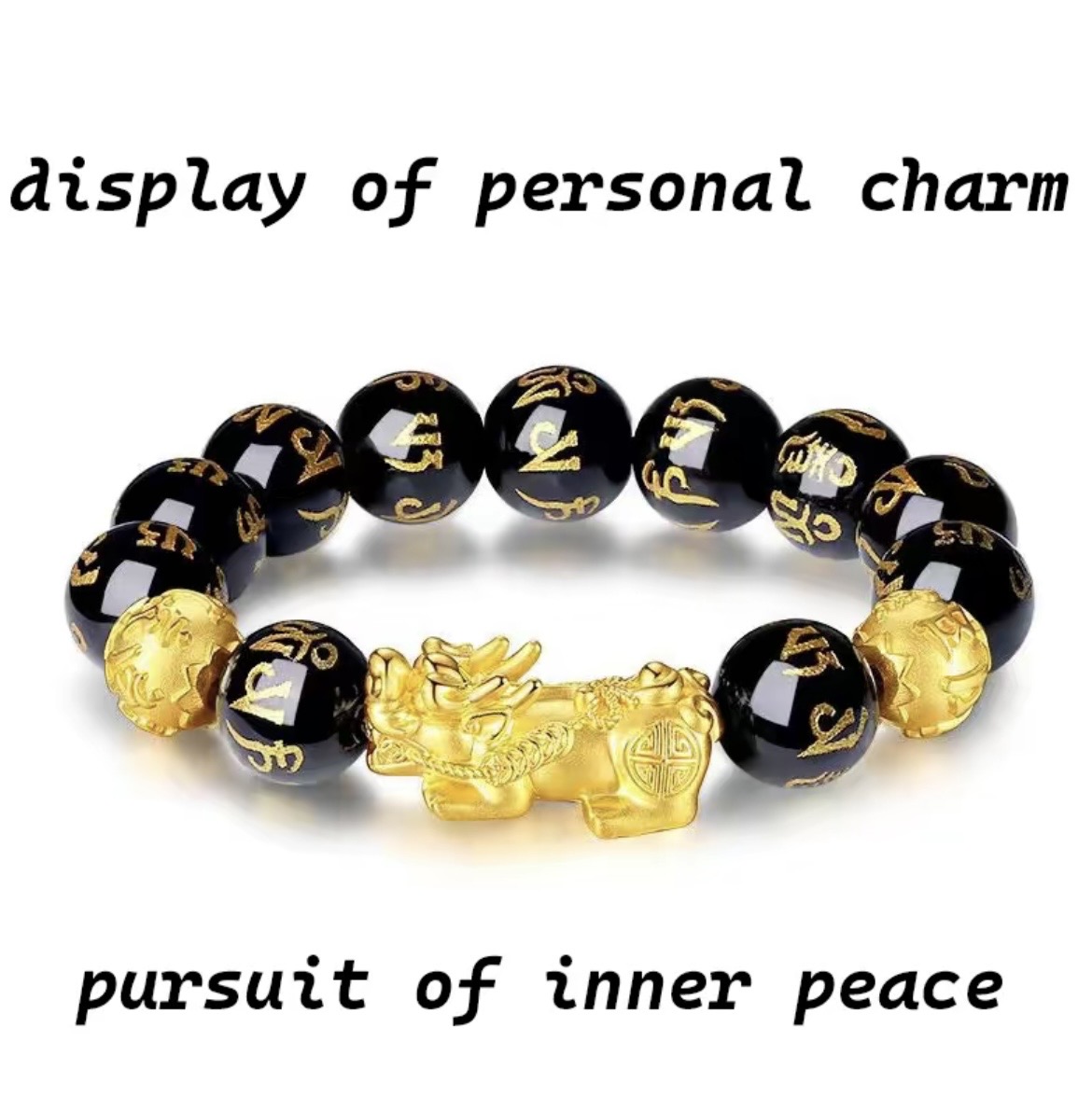 Premium beaded bracelet featuring a gold charm design, symbolizing wealth, protection, and personal energy.